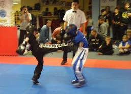 V sobotu 12.1.2013 se rozjelo v Praze první kolo SAP ligy v Kickboxu. Pro Martina Tasutije (žáci do 32 kg - Light contact), to byly první zápasy. V nich se ukázal jako rychlý a technický borec. Nebál se jít do velmi rychlých střetů a první zápas s přehledem vyhrál. Ve dvou dalších postupových kolech trochu zapomínal na techniky nohou a to jej nakonec odsunulo na 4. místo. Přesto byl nejtechničtější z našich závodníků. Martin Jícha (LC žáci - do 47 kg) sice v prvním kole prohrál. Bylo to však se závodníkem, který měl závodit v kategorii nad 47 kg. Bez jakékoli konzultace s kouči, jej organizátor klidně dal do nižší váhovky. A to je trochu podpásovka.Tohle by se na žádných závodech nemělo stát. Zvláště nás to namíchlo z hlediska toho, že Martin Jícha se závodů účastnil poprvé a jeho soupeř jezdí na závody druhým rokem. Nicméně se Martin přes baráž dostal až na třetí místo. V juniorech jsme měli Jakuba Kutíka. V Lightcontactu do 84 kg získal druhé místo a exceloval v Kicklightu do 84 kg, kde se přehledem umístil na první příčce. Tedy všichni tři naši závodníci prošli prvními zápasy a bude to jejich veliká zkušenost. Samozřejmě, že i pro trenéra - jak je vést dál v tomto chlapském sportu. Celková organizace byla dobrá. Rozhodčí všichni na jedničku. Jen škoda, že nebyla alespoň dvě zápasová místa. Vše by rychleji "vodsejpalo".